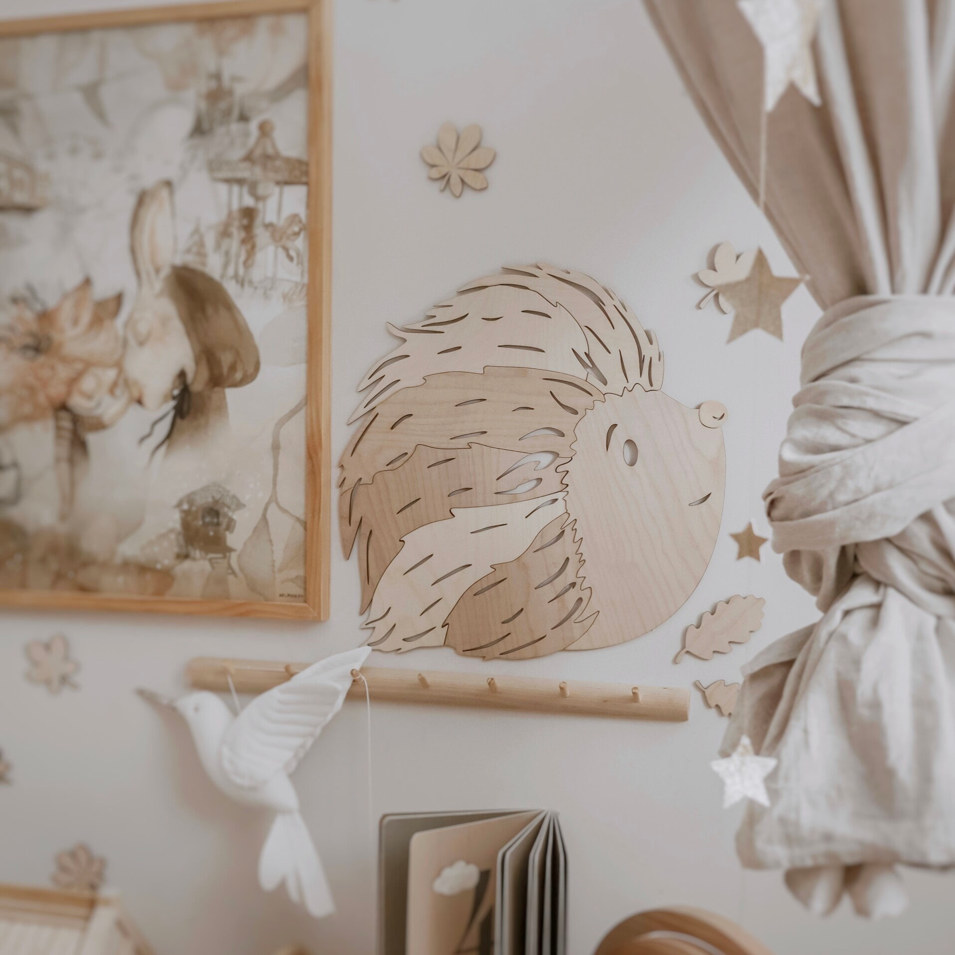 Ga je een bosdieren babykamer inrichten & zoek je unieke muurdecoratie? Dan is deze lieve egel van hout aan de muur, precies wat je zoekt. Het is uniek, duurzaam & het past perfect in een schattige babykamer of kinderkamer. Dit lieve egeltje is beschikbaar in 3 maten zodat het altijd perfect past op één van de muren.