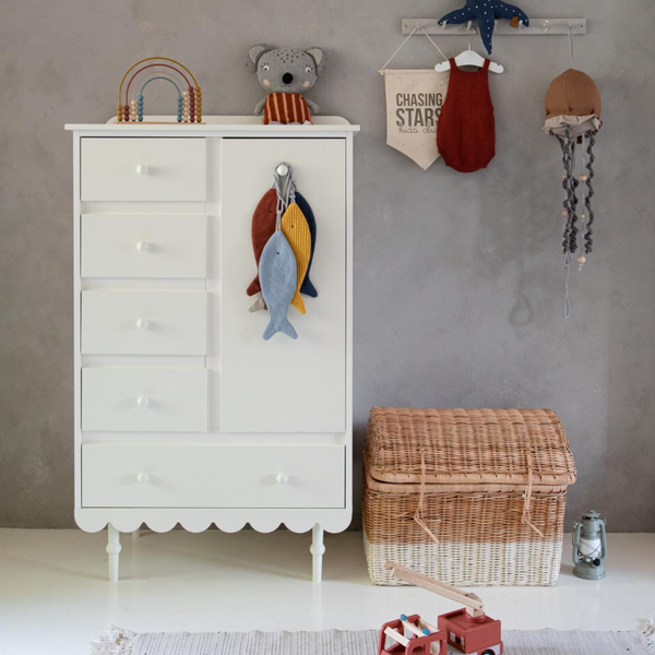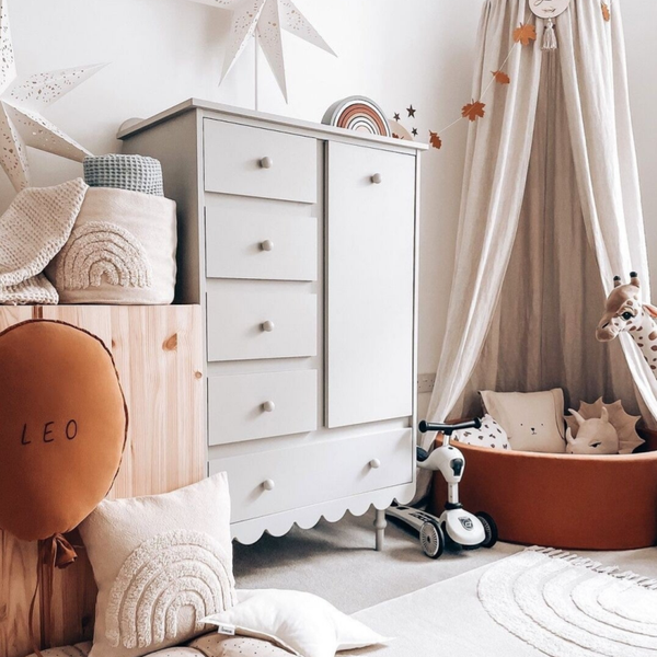 Met vijf ruime lades en een kastje met drie legplanken biedt de Woodluck Babushka meidenkast volop ruimte om alle spulletjes van je kleintje netjes en overzichtelijk op te bergen. De stevige geleiders en het soft-close systeem zorgen ervoor dat de lades en deuren zacht en veilig sluiten – ideaal voor een rustige en veilige omgeving. Deze stijlvolle en functionele meidenkast is de perfecte aanvulling voor elke babykamer!
