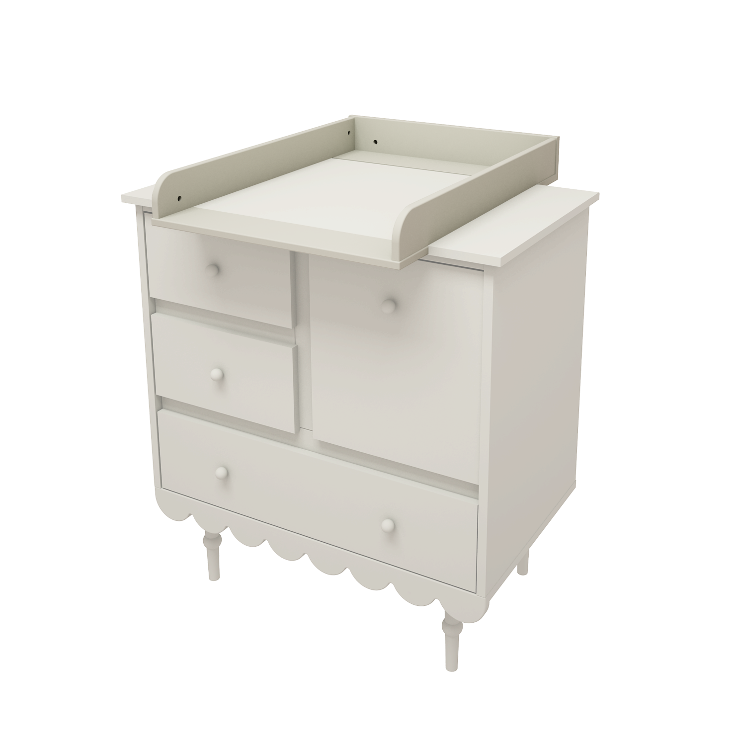 Deze groene commode heeft een optionele opzetstuk die bovenop geplaatst kan worden, zodat je je kindje gemakkelijk en veilig kunt verschonen. De plank heeft afgeronde hoeken en beschermt tegen vallen, en meet 9 cm hoog, 54 cm breed en 75 cm diep.